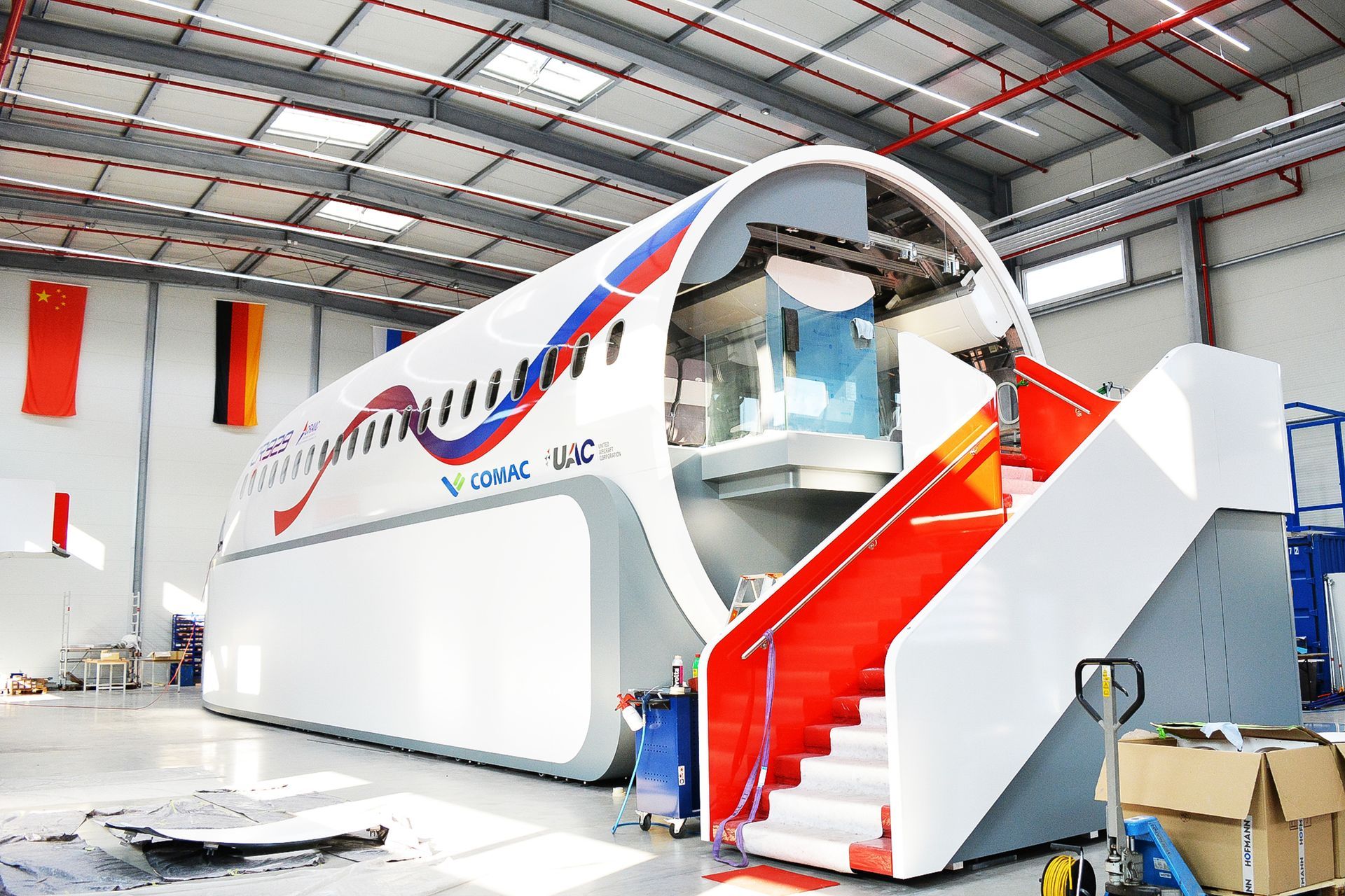 One focus of our activities is the development of mock-ups for aircraft and engines, as well as their components, such as cabins, cockpits, storage compartments, seats, partitions, and mood lighting installations. Among the most challenging projects is the design and delivery of fully equipped and functional aircraft and engine mock-ups at a scale of 1:1. In extremely short development, production, and assembly times of eleven to thirteen months, we deliver complex mock-ups to customers or to trade fairs, such as the China Air Show in Zhuhai or the MAKS Moscow Air Show.
