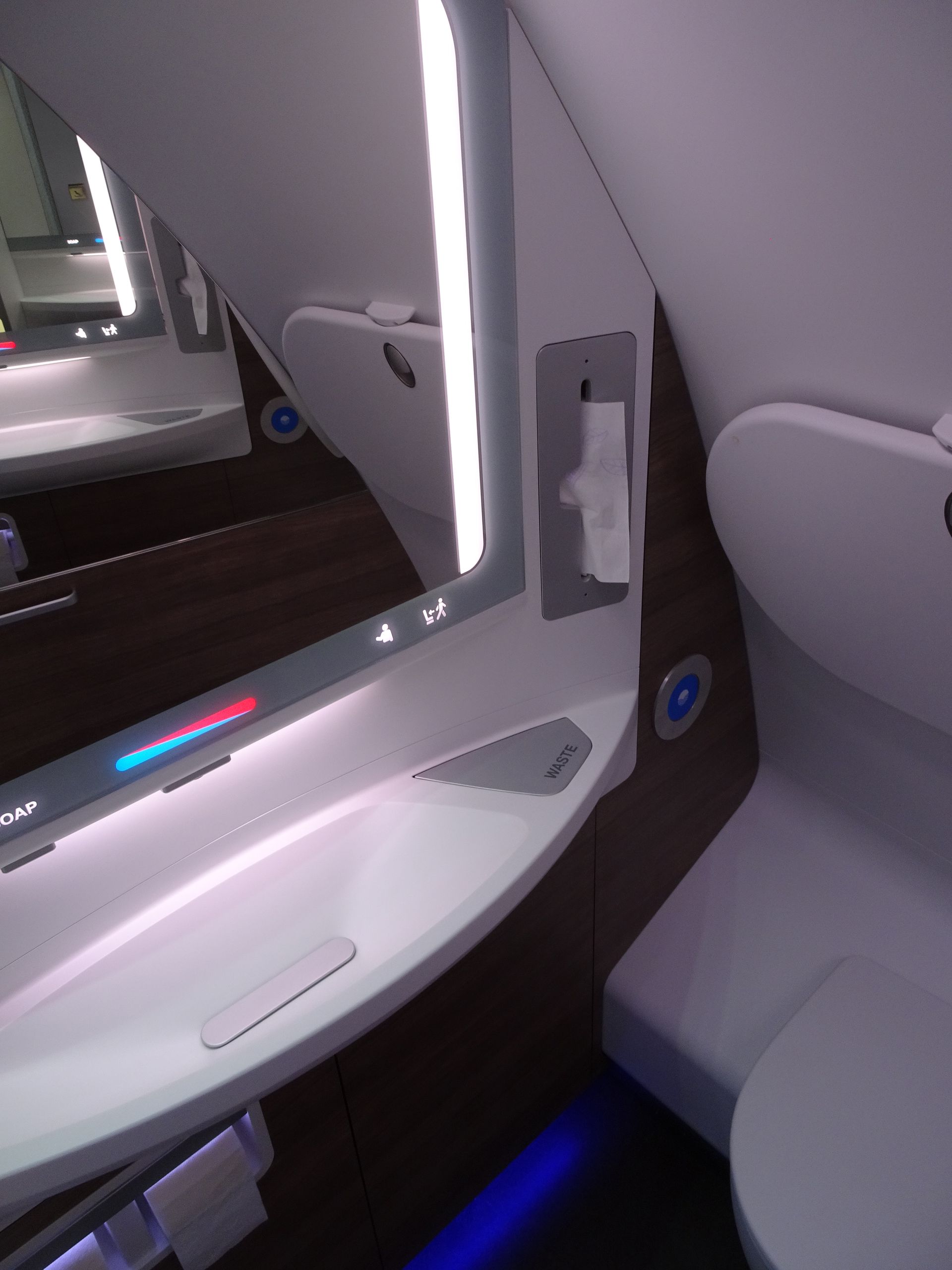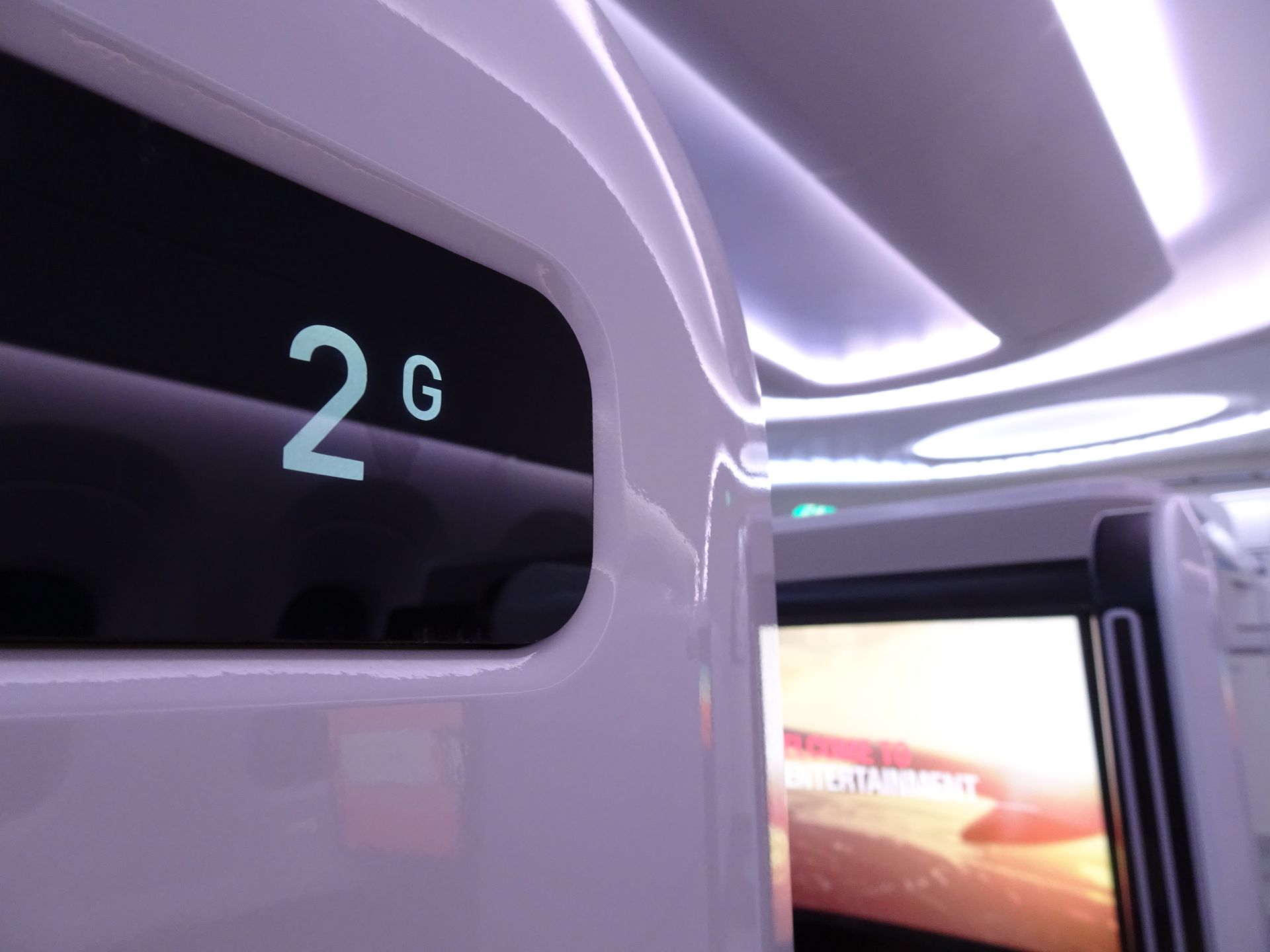 Key elements included the entrance area, the doors, the sidewall panels, the electrically dimmable cabin windows, and the electrically operated, lowerable overhead compartments, which can be remotely controlled both individually and centrally from the cabin management system (CMS or FAP [Flight Attendant Panel]). The cabin ceiling, which serves as a projection surface and, with up to 24 projectors, leaves nothing to be desired in terms of projected images and videos, e.g., starry skies, twilight, northern lights (Aurora Polaris), can be coordinated with the cabin's mood lighting system.