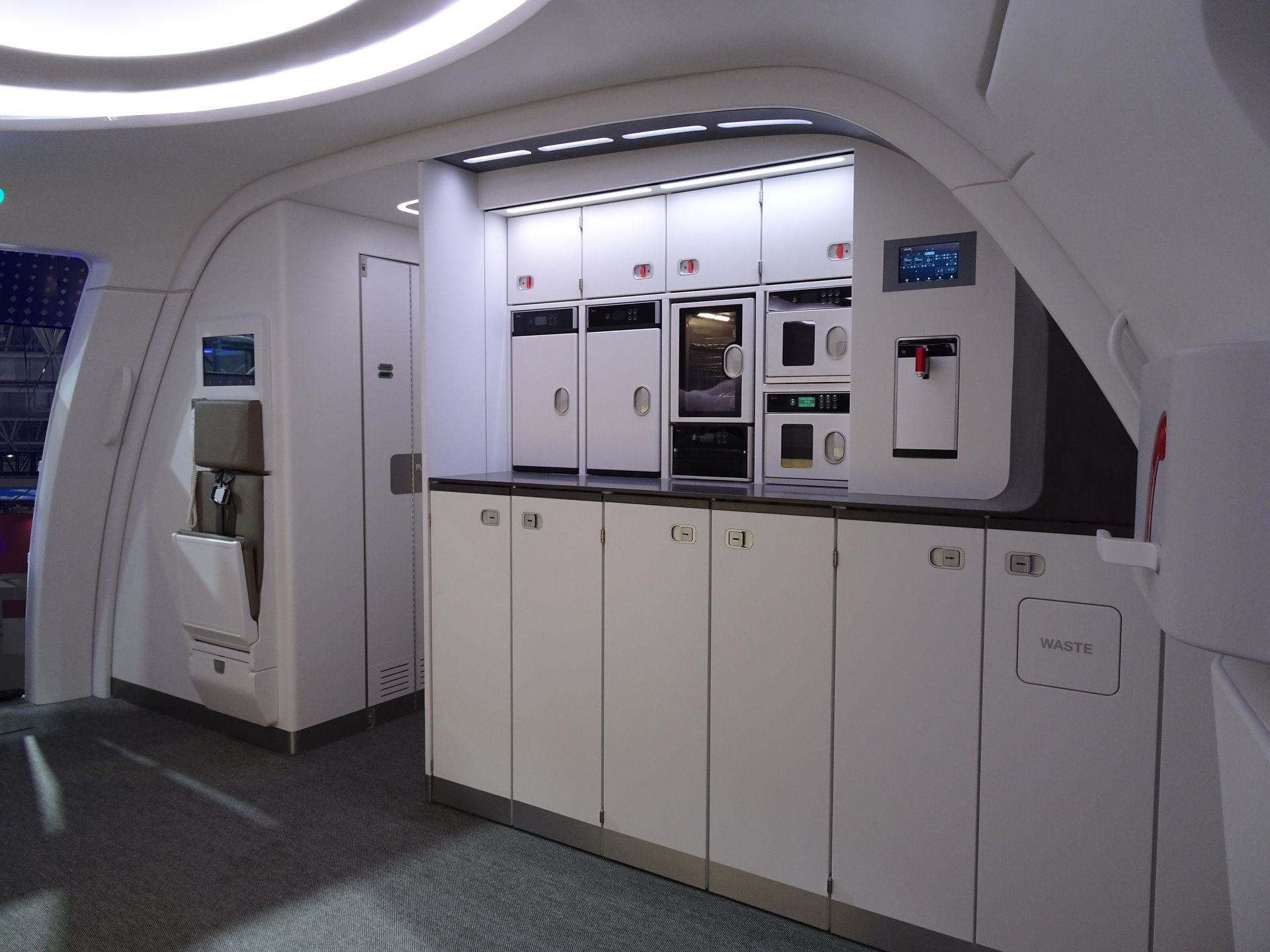 Key elements included the entrance and exit areas, the large luggage compartments designed to accommodate standard hand luggage, the cabin ceiling with mood lighting, a galley, and a lavatory. In addition, functional seats with a very attractive design were delivered for business and economy class. The cabin was equipped with a modern entertainment system.