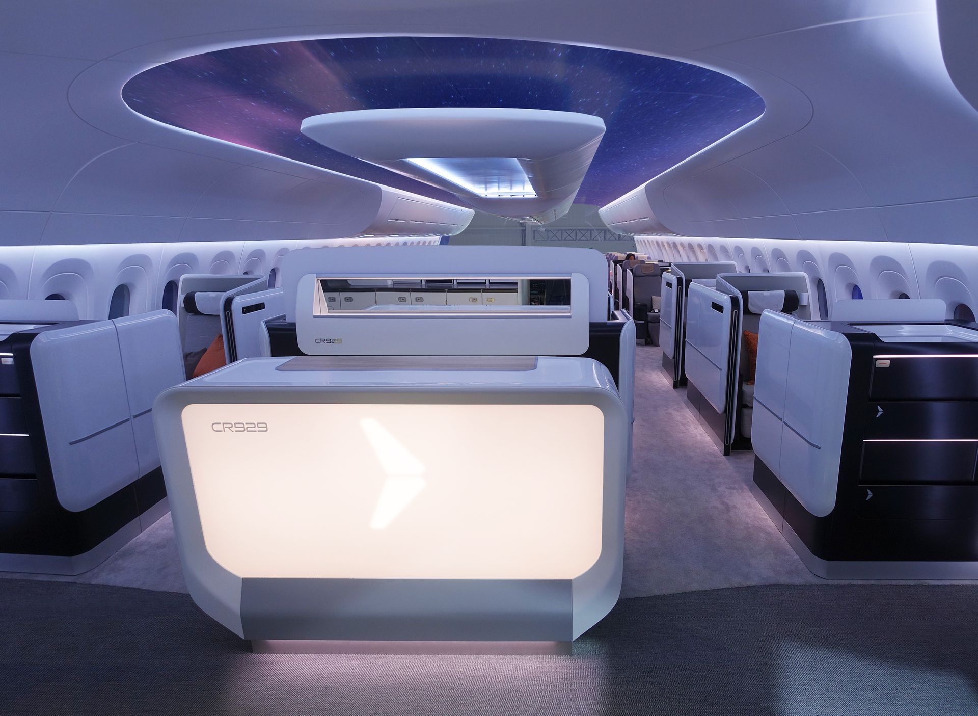 CRAIC [China-Russia Commercial Aircraft International Corporation] unveiled the CR929 long-range aircraft with a full-size mock-up at the China Air Show in Zhuhai in November 2018. BAIDEG designed and delivered the aircraft mock-up, including the entire functional cabin and cockpit, in a turnaround time of just eleven months. The company "müller|romca industrial design" was a strong development partner.